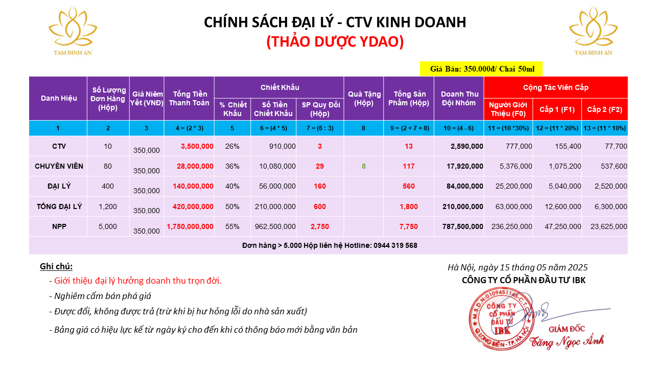 BÙNG NỔ THU NHẬP CÙNG Y DAO: CHÍNH SÁCH ĐẠI LÝ & CỘNG TÁC VIÊN TỐT NHẤT THỊ TRƯỜNG!